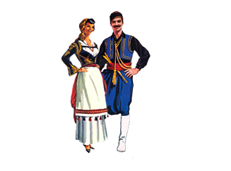 Γυναικεία και ανδρική ενδυμασία (Πελοπονησσιακό Λαογραφικό Ίδρυμα)