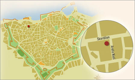 According to Cornelius' work Creta Sacra, the foundation of the dependency dates back to the early 16th century. The tall, sturdily-built katholikon (principal monastery church) abutted on the northeast corner of the enceinte. The monastery with its substantial defensive wall was recorded on all Venetian maps and was a landmark in that area of the town.