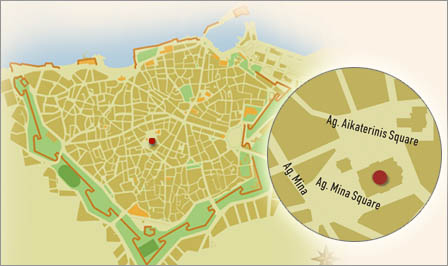 The new cathedral was built next to the small church dedicated to St. Minas and the Presentation of Christ (now known as "Small Saint Minas"). It too was consecrated to Saint Minas, patron saint and protector of Megalo Kastro, thus combining legend with tradition and the town's history.